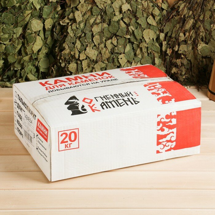 Камни для бани дунит обвалованный 20 кг (коробка)