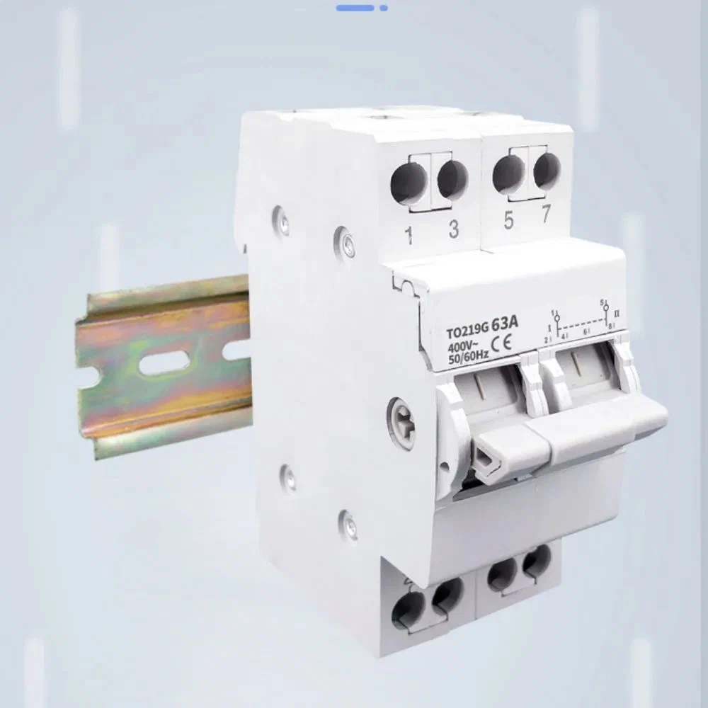 Трехпозиционный переключатель, 2p, 63А, 2 полюса, модульный перекидной, рубильник реверсивный, 2 источника питания, на din-рейку