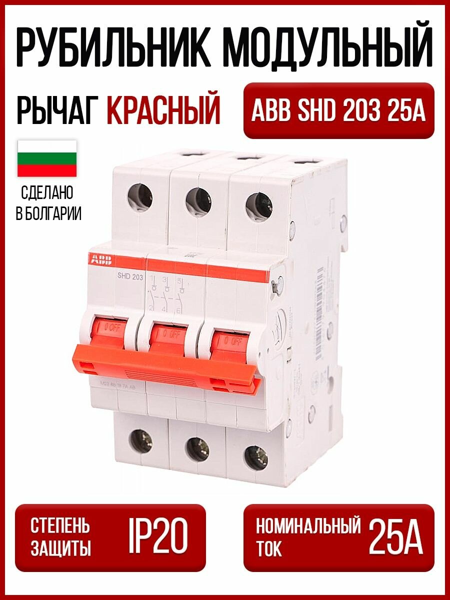 SHD203/25 Рубильник 3-полюсный модульный 25А (красный рычаг) ABB, 2CDD273111R0025