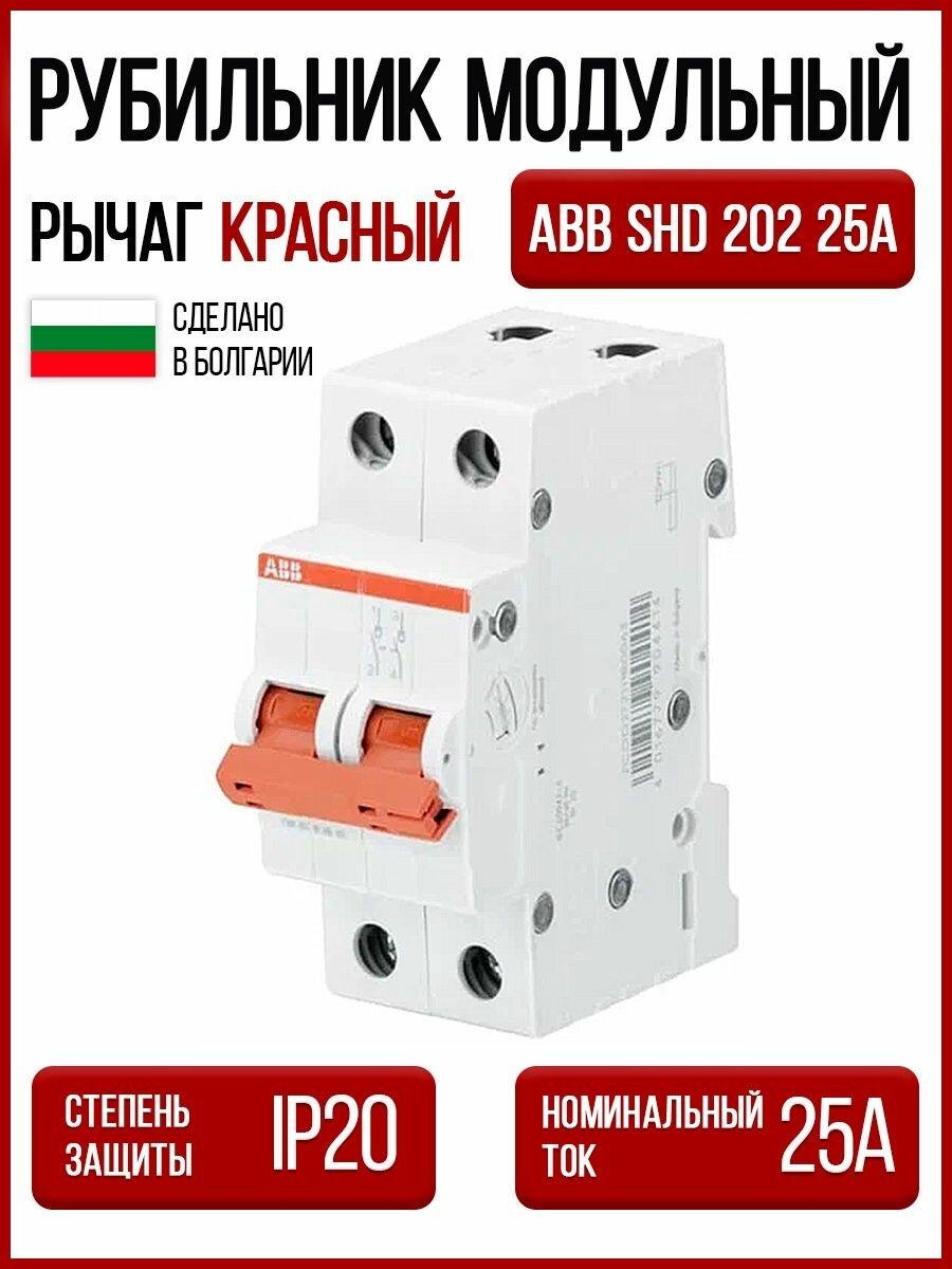 Купить SHD202/25 Рубильник 2-полюсный модульный 25А (красный рычаг) ABB, 2CDD272111R0025
