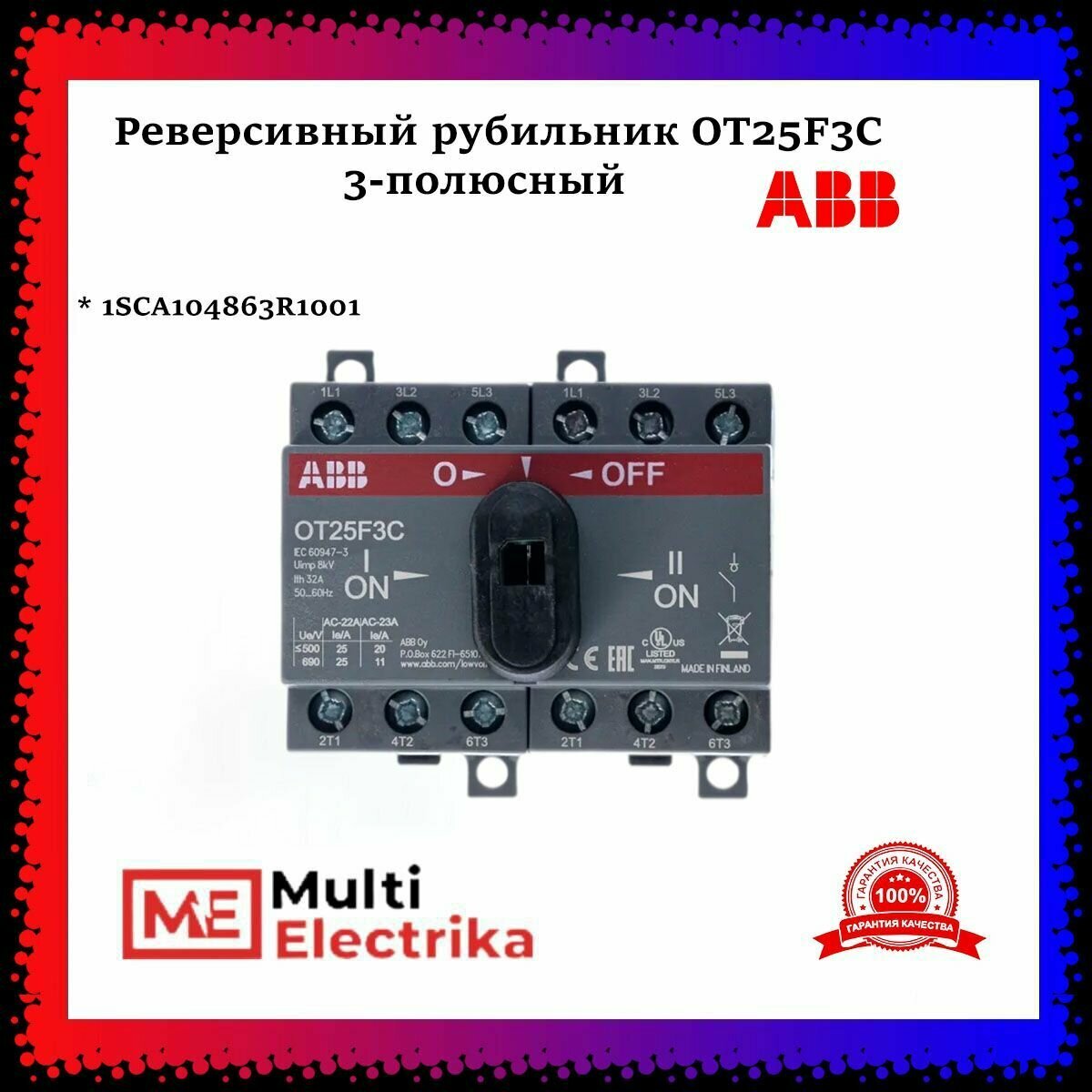 Купить Реверсивный рубильник ABB 3P OT25F3С 25А на DIN-рейку (с ручкой) 1шт (арт. 1SCA104863R1001)