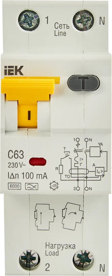 СохранитьВыключатель автоматический дифференциального тока 2п (1P+N) C 63А 100мА тип A 6кА АВДТ-32 IEK MAD22-5-063-C-100 интересное: