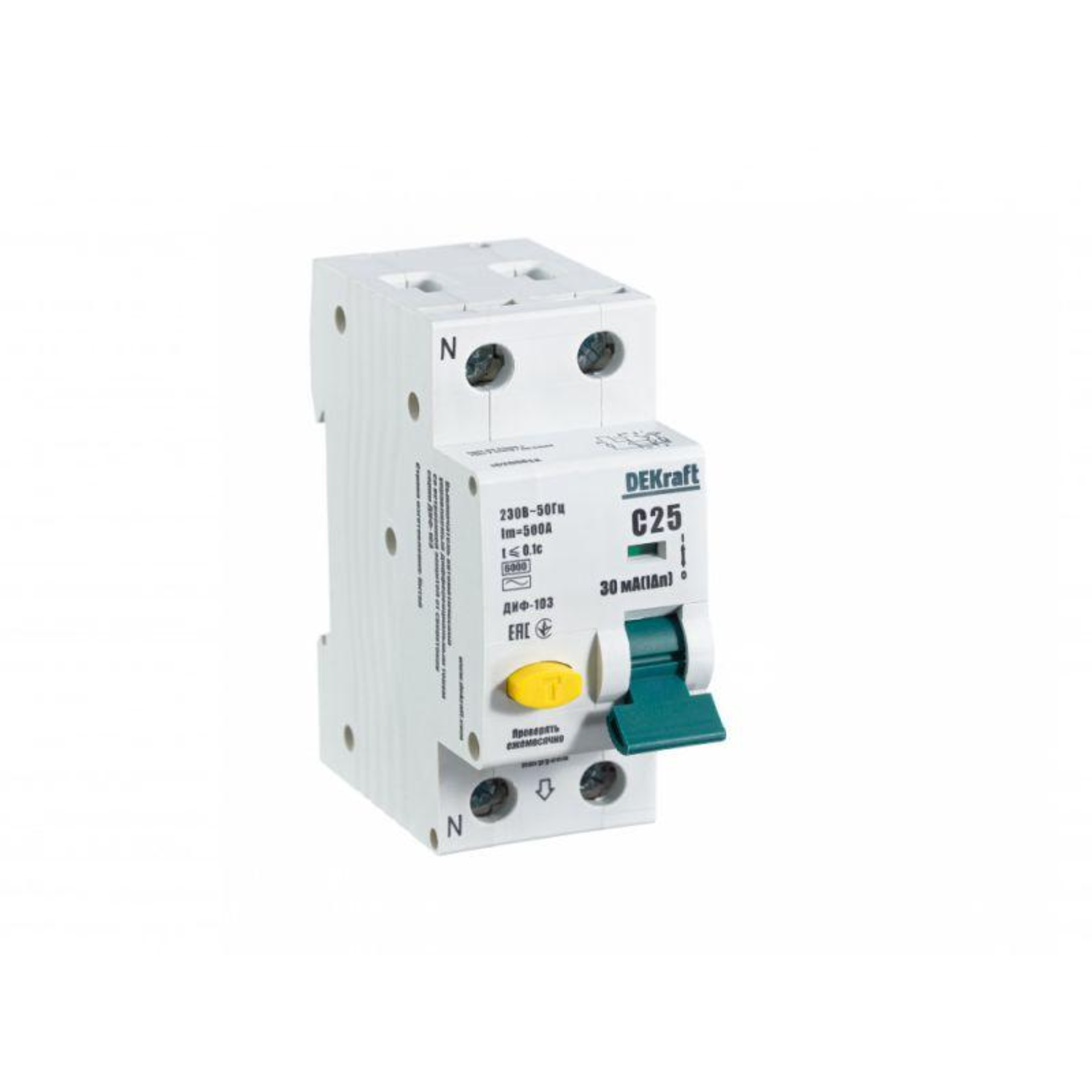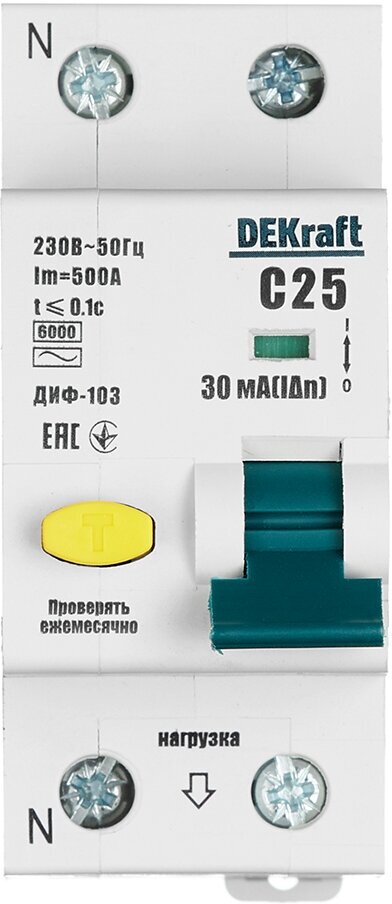 Купить DEKraft Дифференциальный автомат (АВДТ) 1Р+N 25А 30мА тип AC х-ка С ДИФ-103 6кА