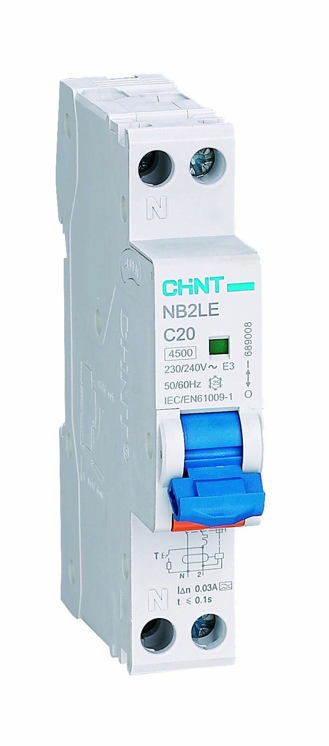 CHINT Диф. автомат NB2LE 1P+N 20A 30mA 1мод., х-ка С, электронный тип AС, 6kA