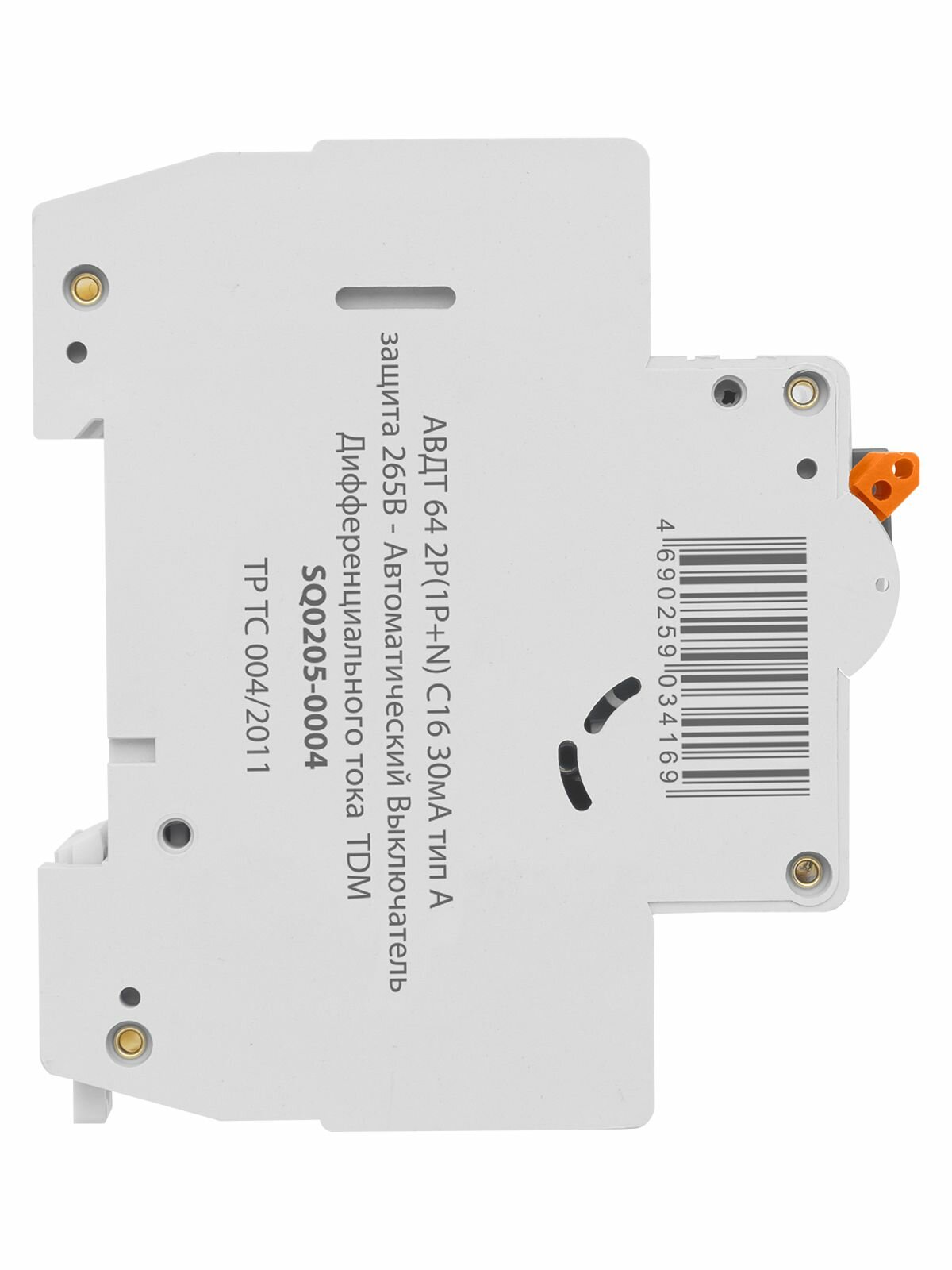 Дифференциальный автоматический выключатель Tdm Electric АВДТ 64, 2Р(1Р+N), C16, 30 мА, 6 кА, тип А