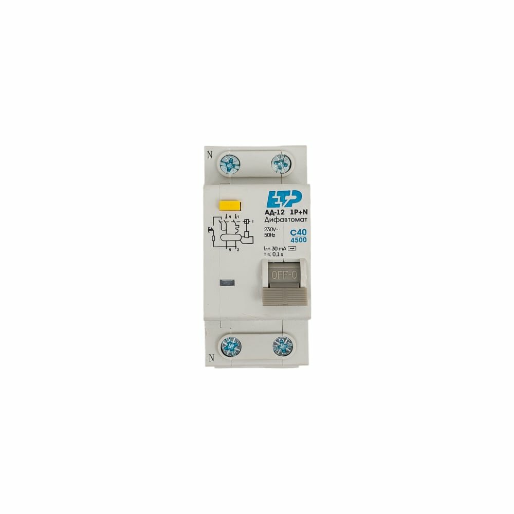 Купить ЕТР ETP Автомат дифференциальный 1P+N 40А тип АС 30 мА 4,5 кА 19016