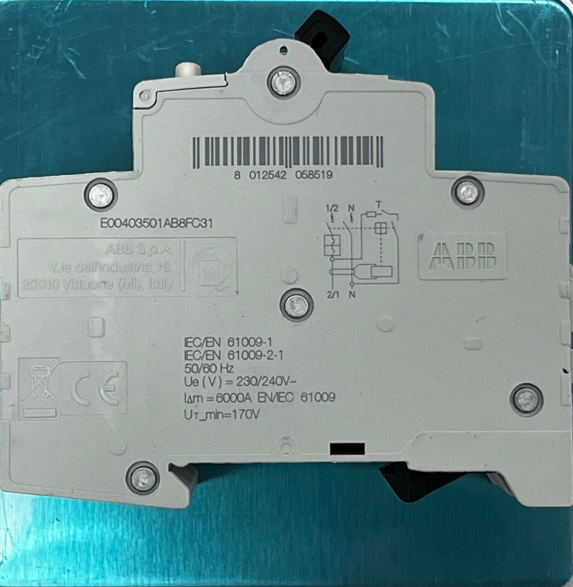 DS201 C16 A10 дифференциальный автоматический выключатель 1P+ N, 16A, 10mA, тип А, 6kA (хар-ка C) ABB, 2CSR255180R0164