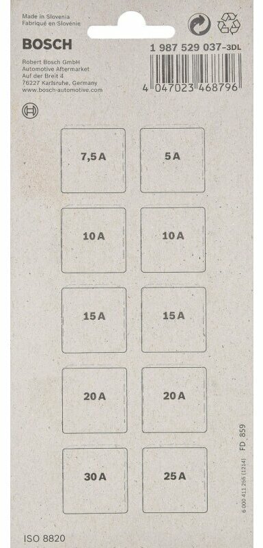 Предохранитель 5-30А флажковый комплект 10шт. Норма BOSCH / Арт. 1987529037