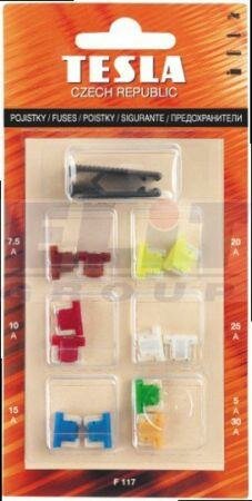 Комплект Предохранителей Блистер (5A-1Шт,7.5A-2Шт,10A-2Шт,15A-2Шт,20A-2Шт,25A-2Шт,30A-1Шт + Пинцет) TESLA арт. F117000000