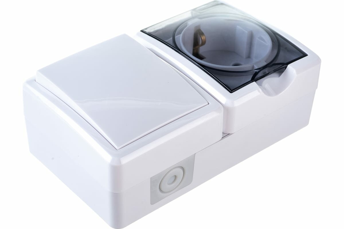 Купить ЭРА 11-7401-01 Белый Блок розетка+выключатель IP54, 16A(10AX)-250В, ОУ, Эксперт