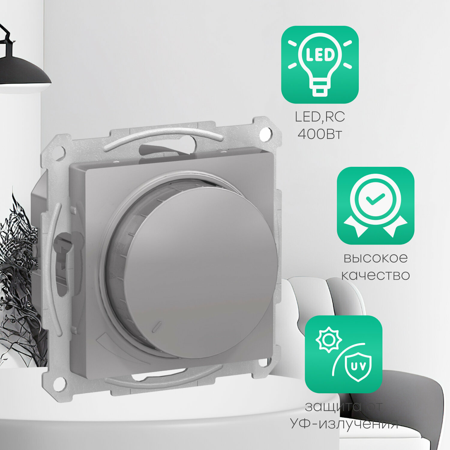 Купить Светорегулятор 400Вт поворотно-нажимной с/у алюминий механизм AtlasDesign Systeme Electric