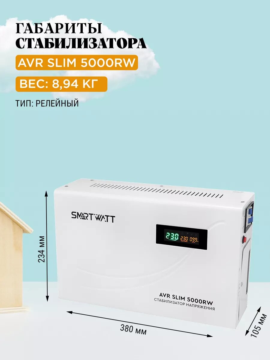 Стабилизатор напряжения настенный AVR SLIM 10000RW, SMARTWATT AVRSLIM10000RW (1 шт.)