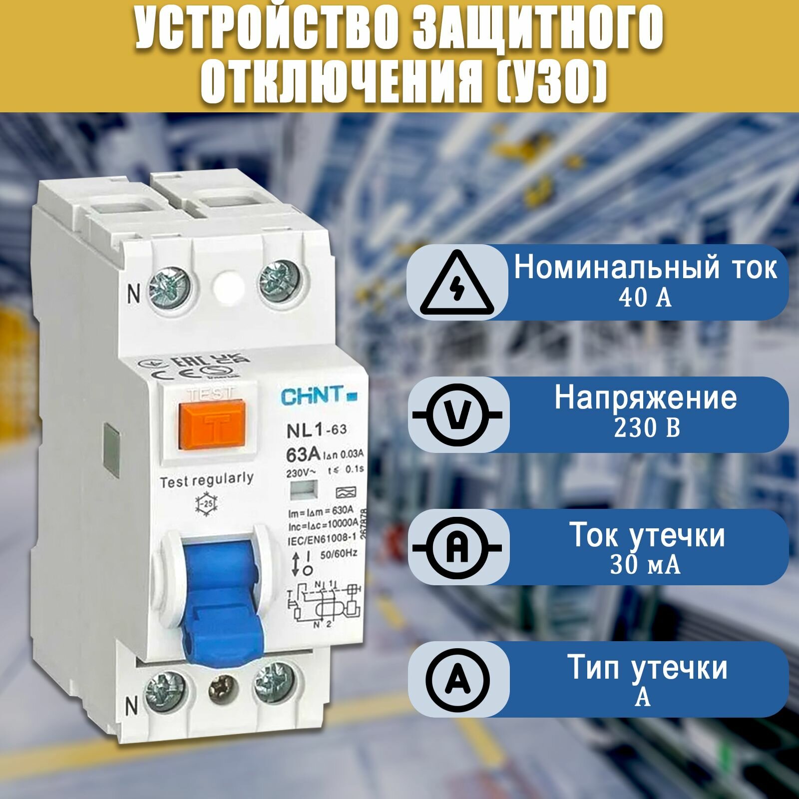 СохранитьВыключатель дифференциального тока (УЗО) Chint 1п+N 40А 30мА тип A 6кА NXL-63 (R), 280718 интересное: