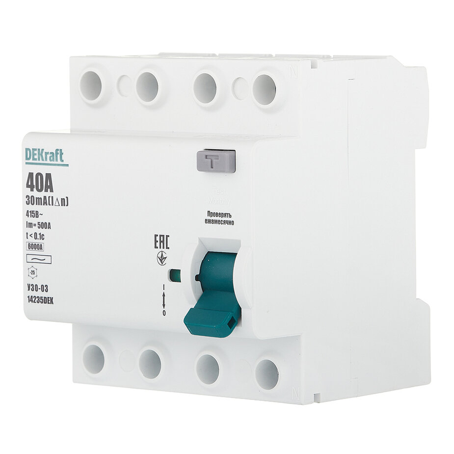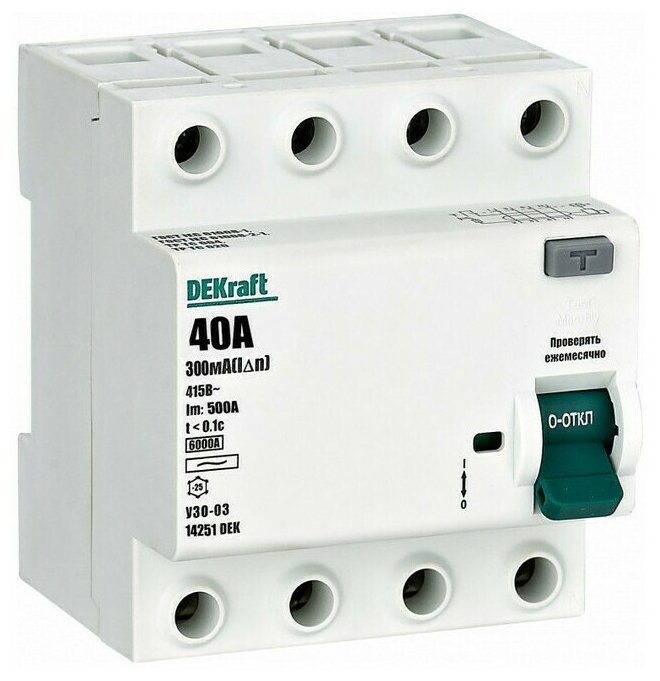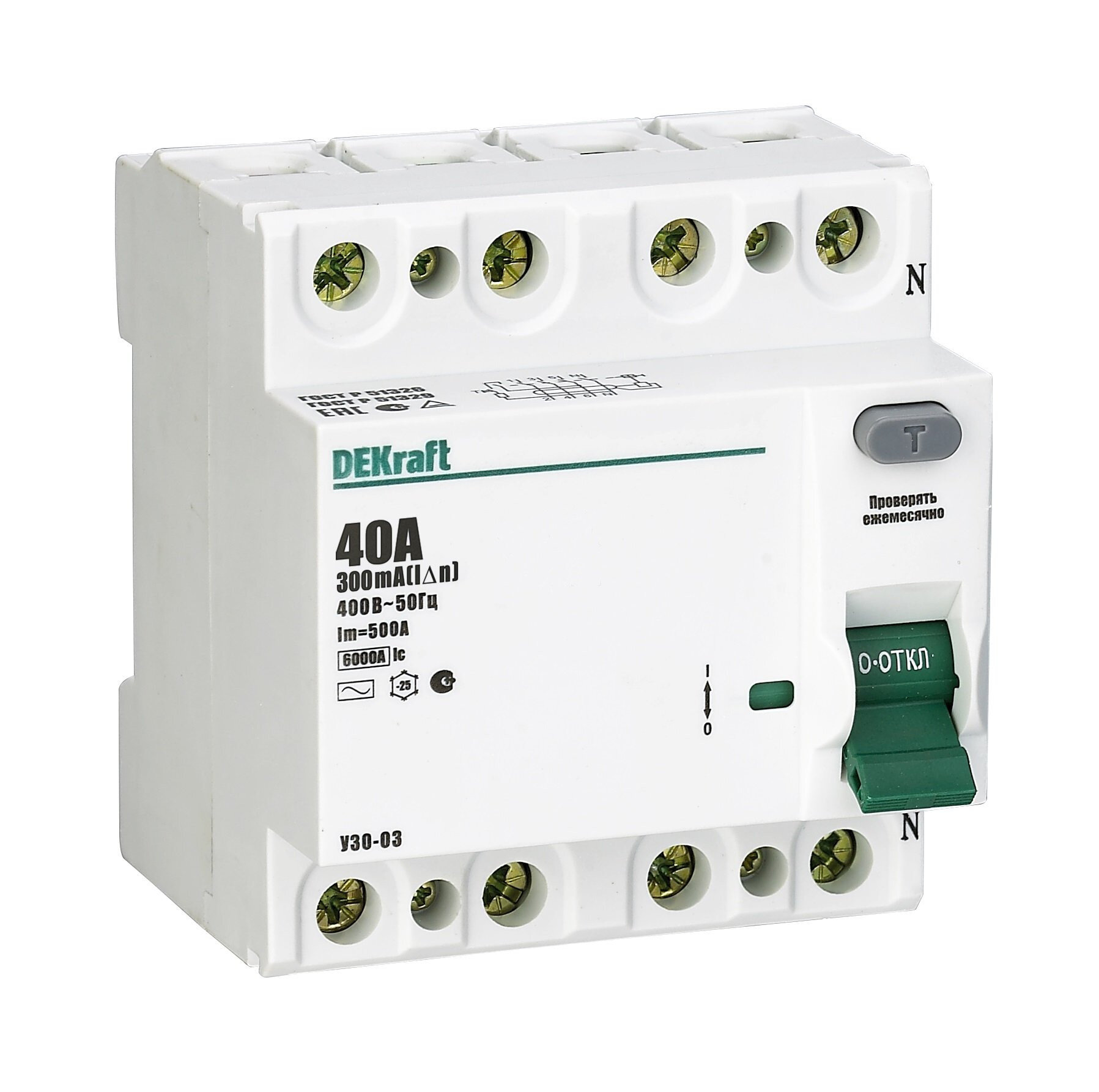 Выключатель дифференциального тока 4P 40А 300мА тип AC 6кА УЗО-03 14251DEK DEKraft интересное: