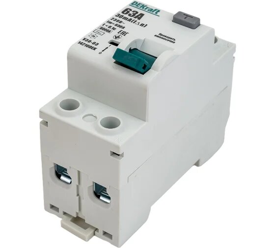 СохранитьУЗО 63А 2 полюса 30мА выключатель диф. тока ВДТ Dekraft интересное: