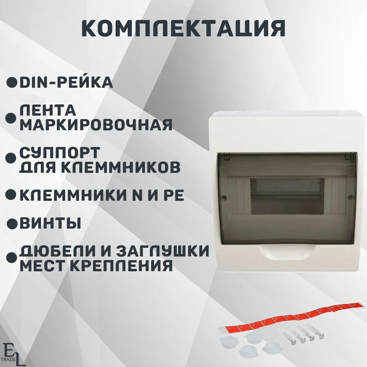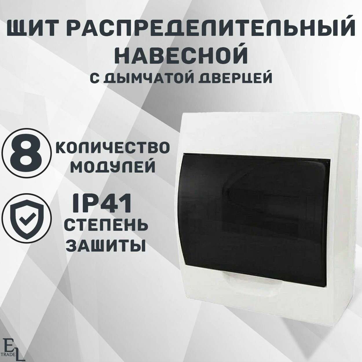 Щит распределительный навесной 8 модулей (230х102х175, пластик, с дымчатой дверцей, IP41)