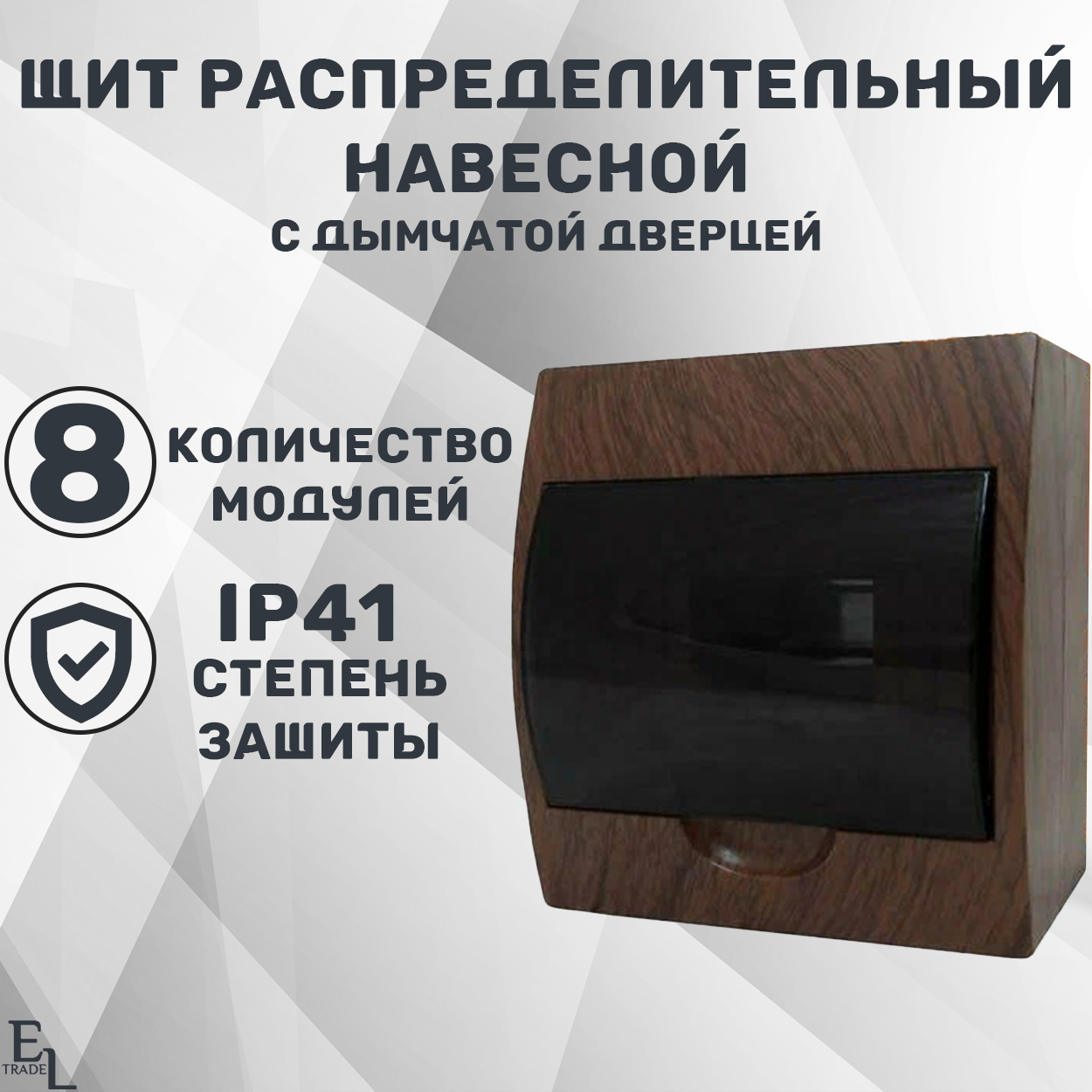Щит распределительный навесной 8 модулей (230х102х175, пластик, с дымчатой дверцей, IP41)