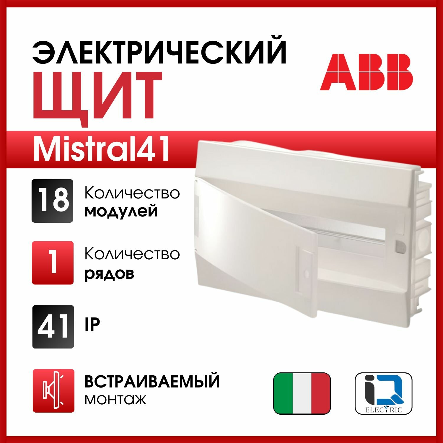 Бокс встраиваемый ABB MISTRAL 41F 18 модулей (1x18) с клеммами, белая дверь 1SLM004102A1104