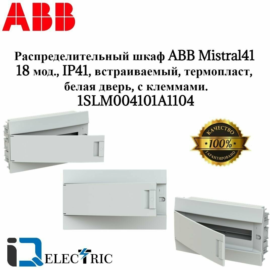Распределительный шкаф ABB Mistral 41 на 18 мод. навесной, белая дверь, с клеммами 1SLM004102A3104