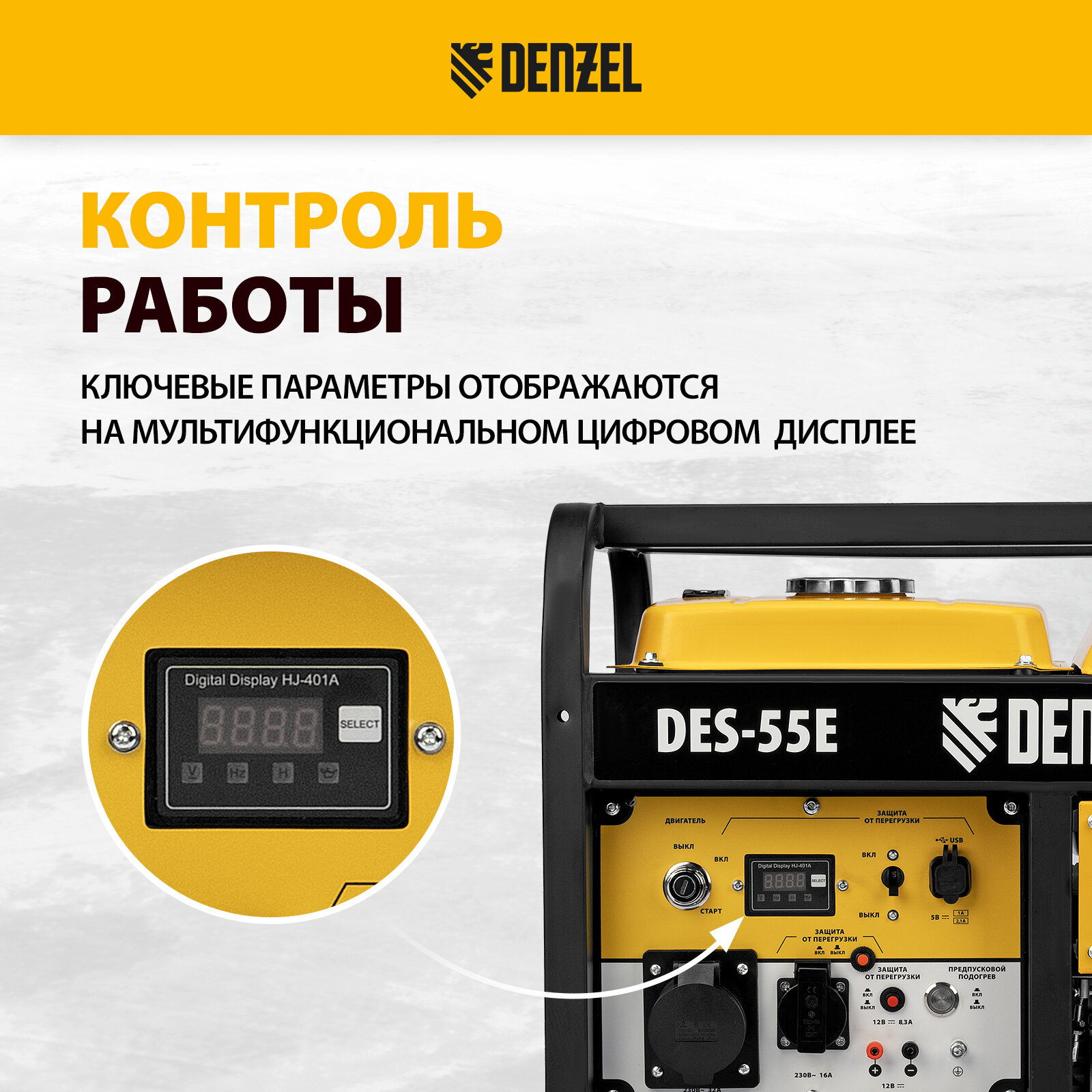 Купить Генератор дизельный Denzel DES-55E, 5,5 кВт, 230 В, 11 л, электростартер 94414