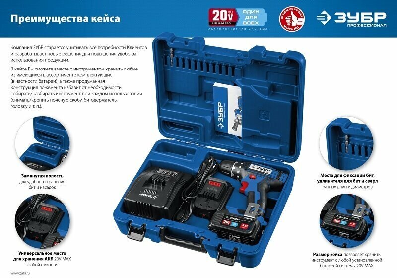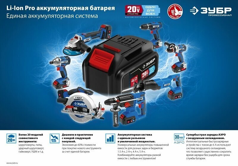| Аккумуляторная система | ЗУБР 20V MAX Lithium PRO |