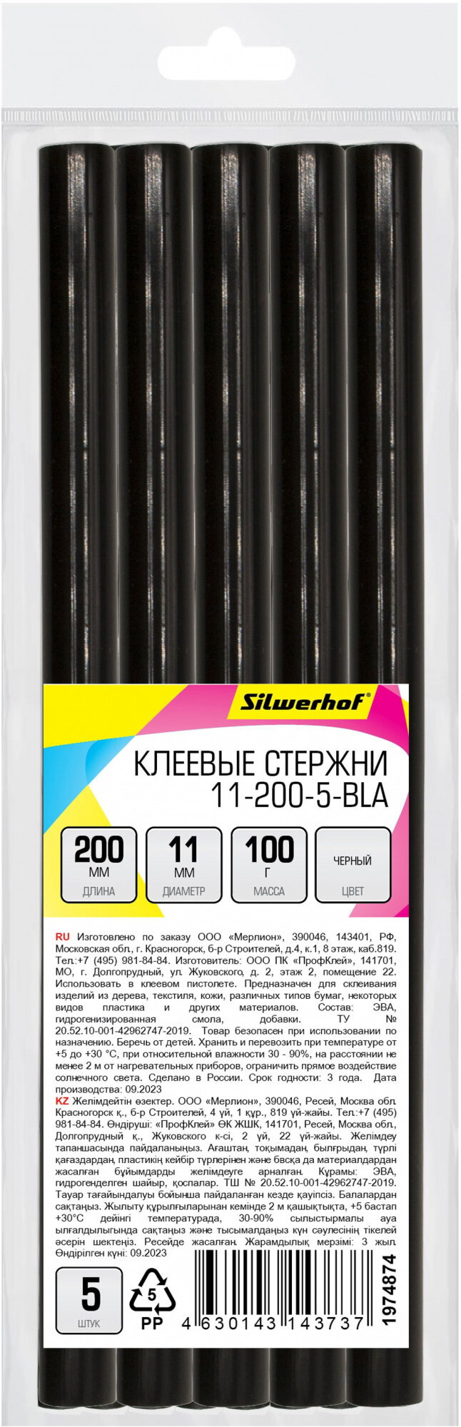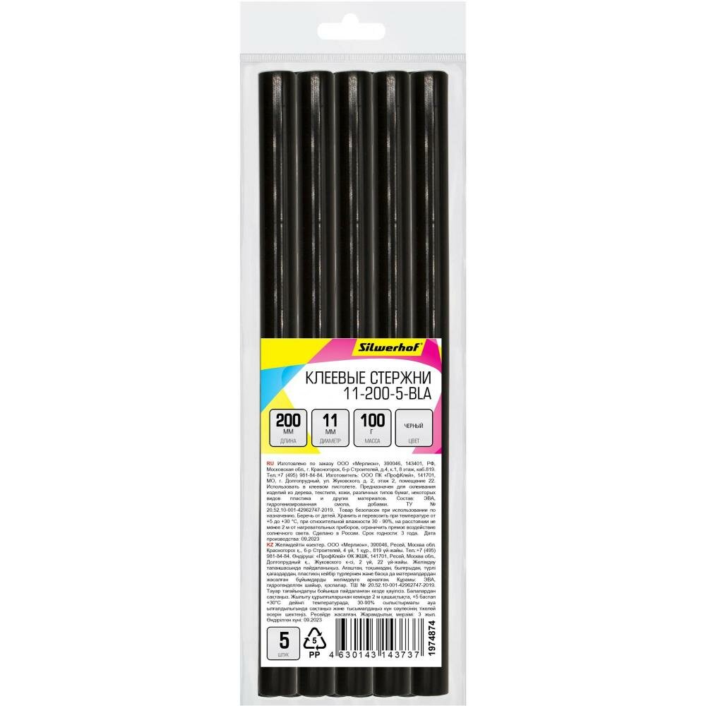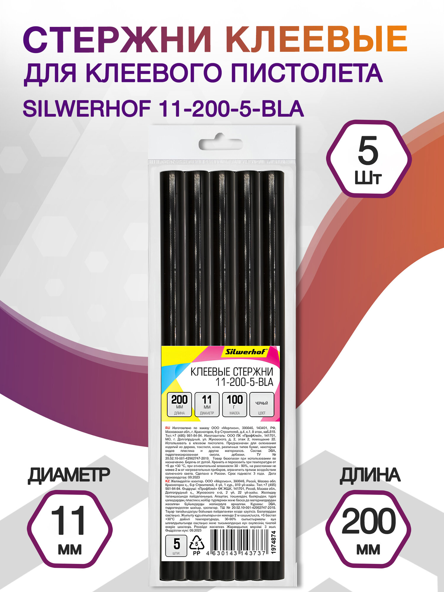 Cтержни клеев. для клеев.пист. Silwerhof 11-200-5-BLA дл.200мм D11мм черный упак:5шт интересное:
