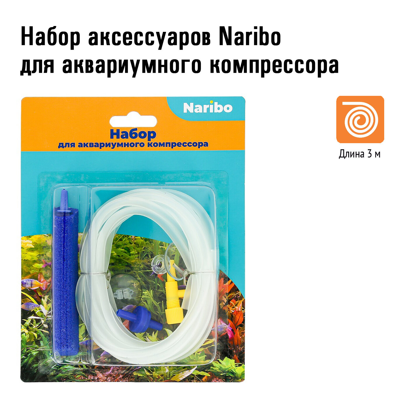 Набор Naribo №2 д/акв.компрессора (ПВХ шланг 3м, рас.воз 10см 1 шт обр.кл1 шт.,прис2шт, кр.1шт)
