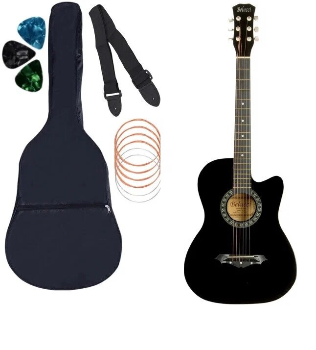 В комплекте: Акустическая гитара 7/8 Belucci BС3820 BK матовая, Чехол, Ремень, 6 Струн, Медиаторы,черная ,38 дюймов интересное: