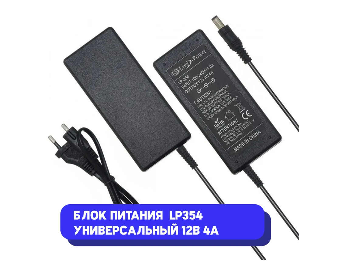 Блок питания LP354 (сетевой адаптер) универсальный 12V/4A (5.5x2.5 мм) интересное: