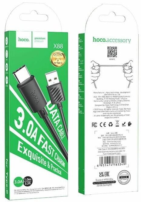 Кабель Hoco X88 Type-C - Type-C, 1 м, черный интересное: