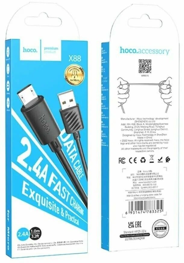 Кабель hoco microUSB 2 метра, быстрая зарядка, зарядный шнур, провод для телефона