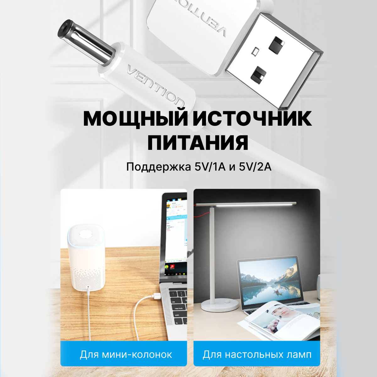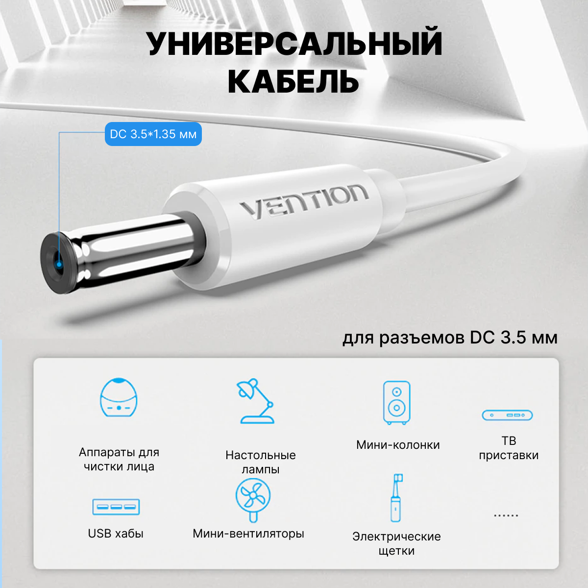 Купить Кабель питания USB AM/DC-jack 3.5мм (M), длина 1 м Vention цвет белый, для роутера, сплиттера, камеры CEXWF