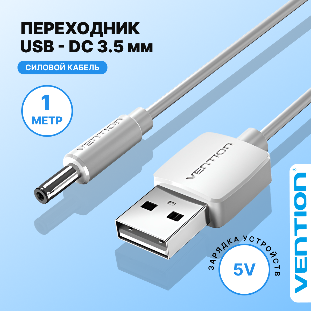 Кабель питания USB AM(папа) DC-jack 3.5мм М (папа) Vention провод 1 метр для роутера, сплиттера, камеры арт. CEXWF