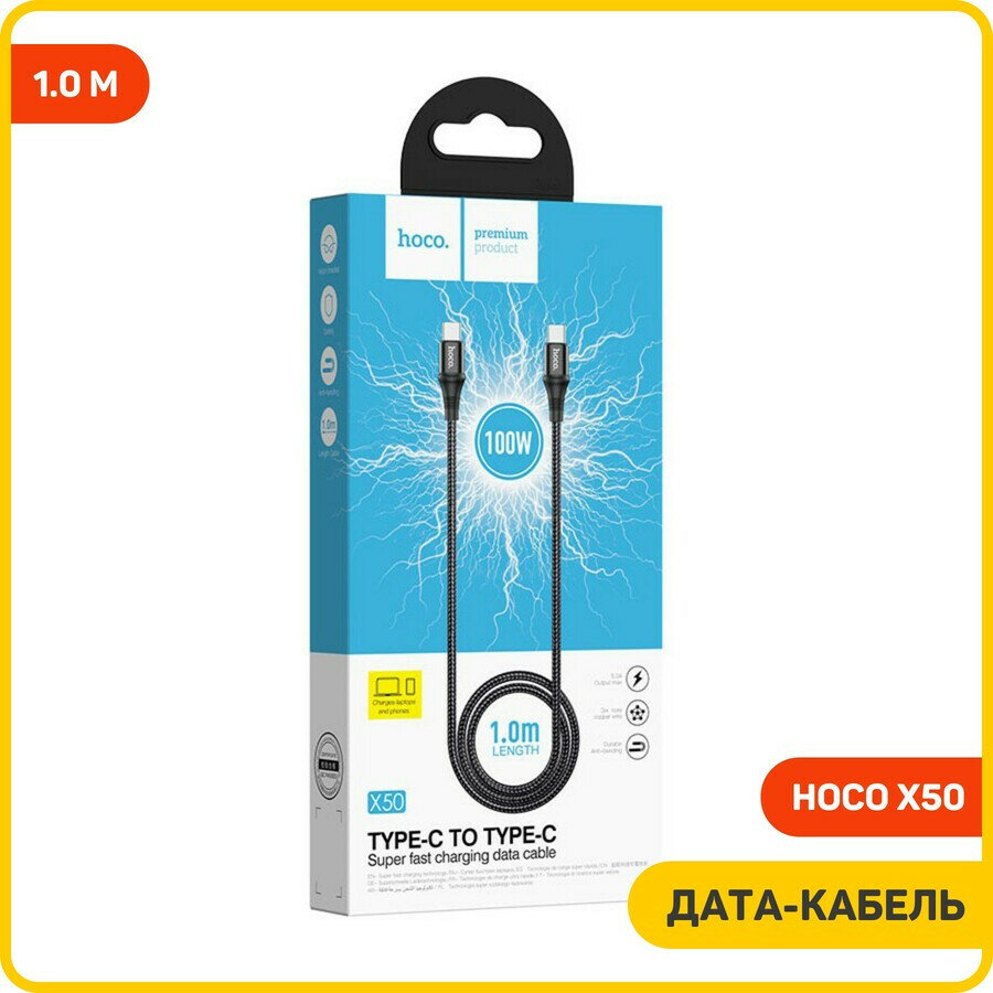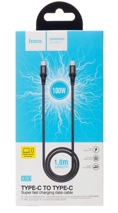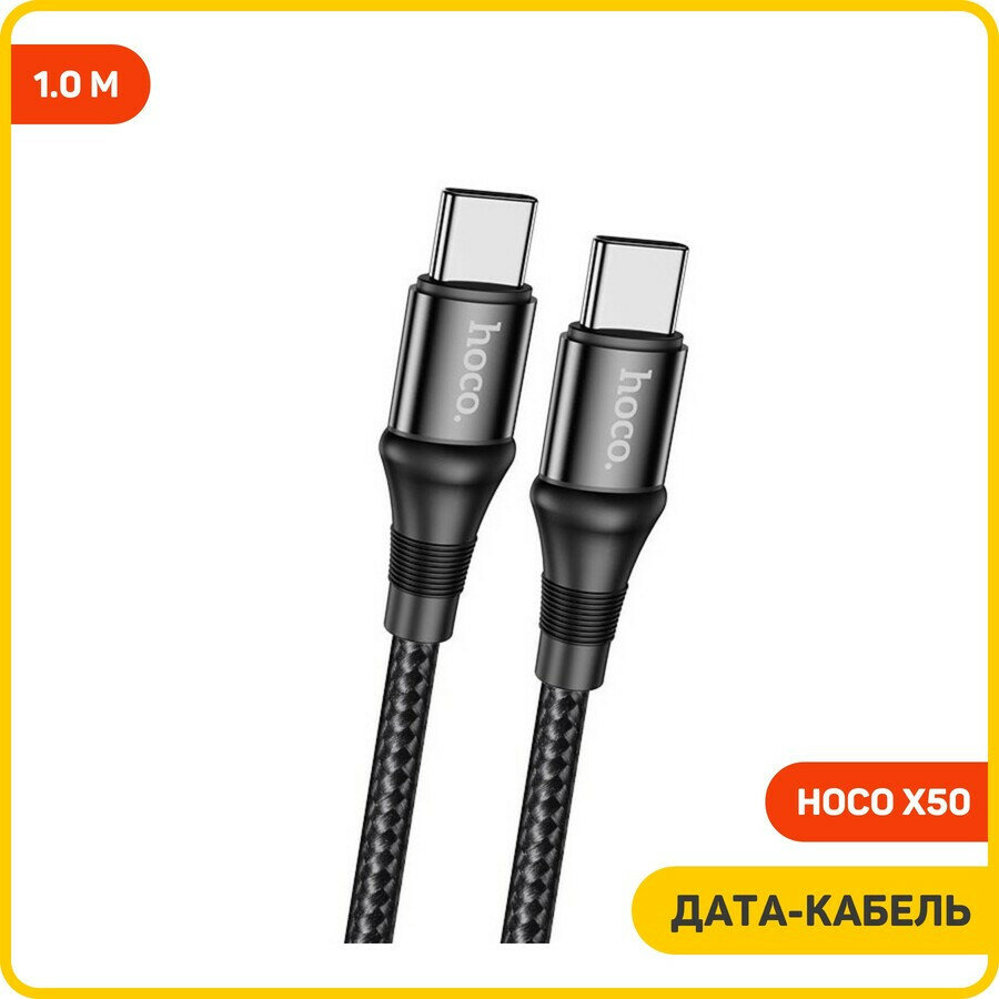 Кабель Hoco X50, Type-C - Type-C, 5 А, 100 Вт, Power Delivery, 1 м, черный