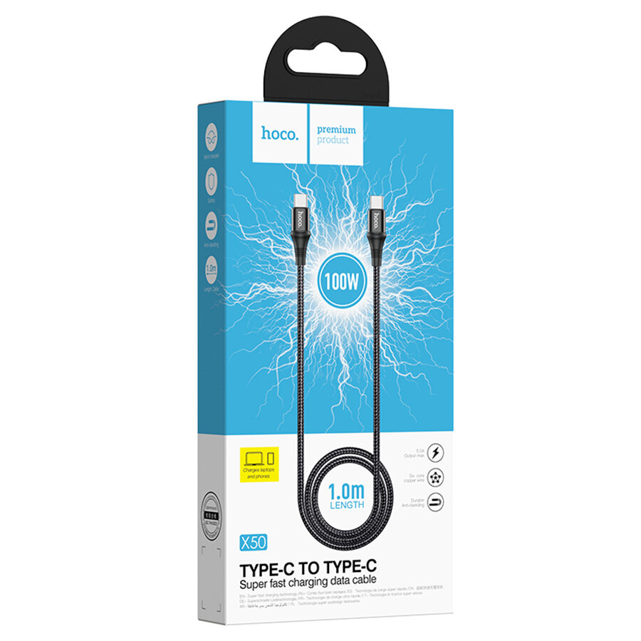 Скоростной кабель Type-C- Type-C для ноутбуков, Macbook, планшетов и т.д. (100W, 1м , 20V/5A) , HOCO X50