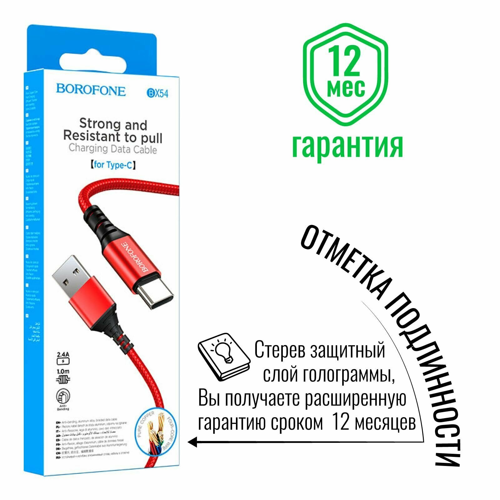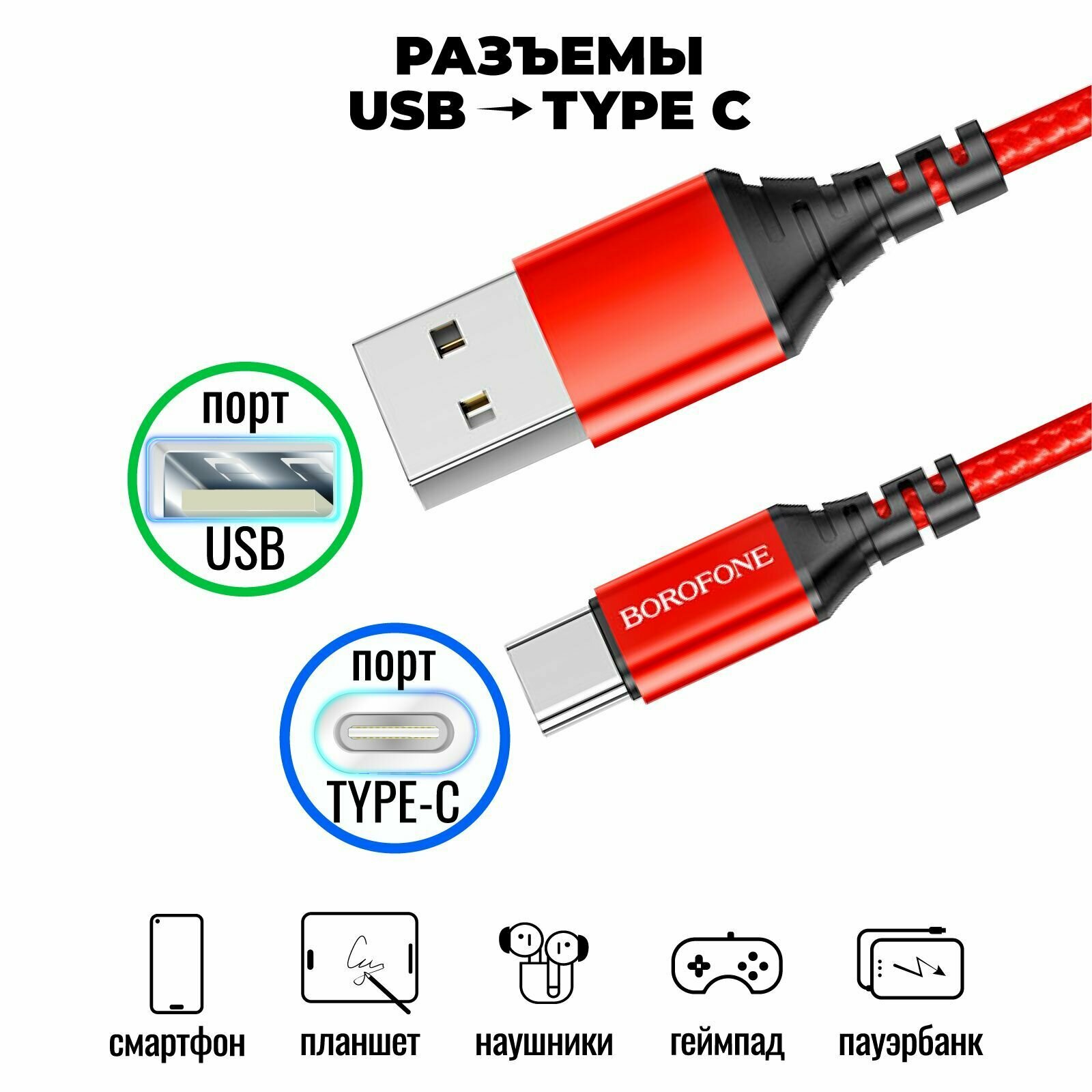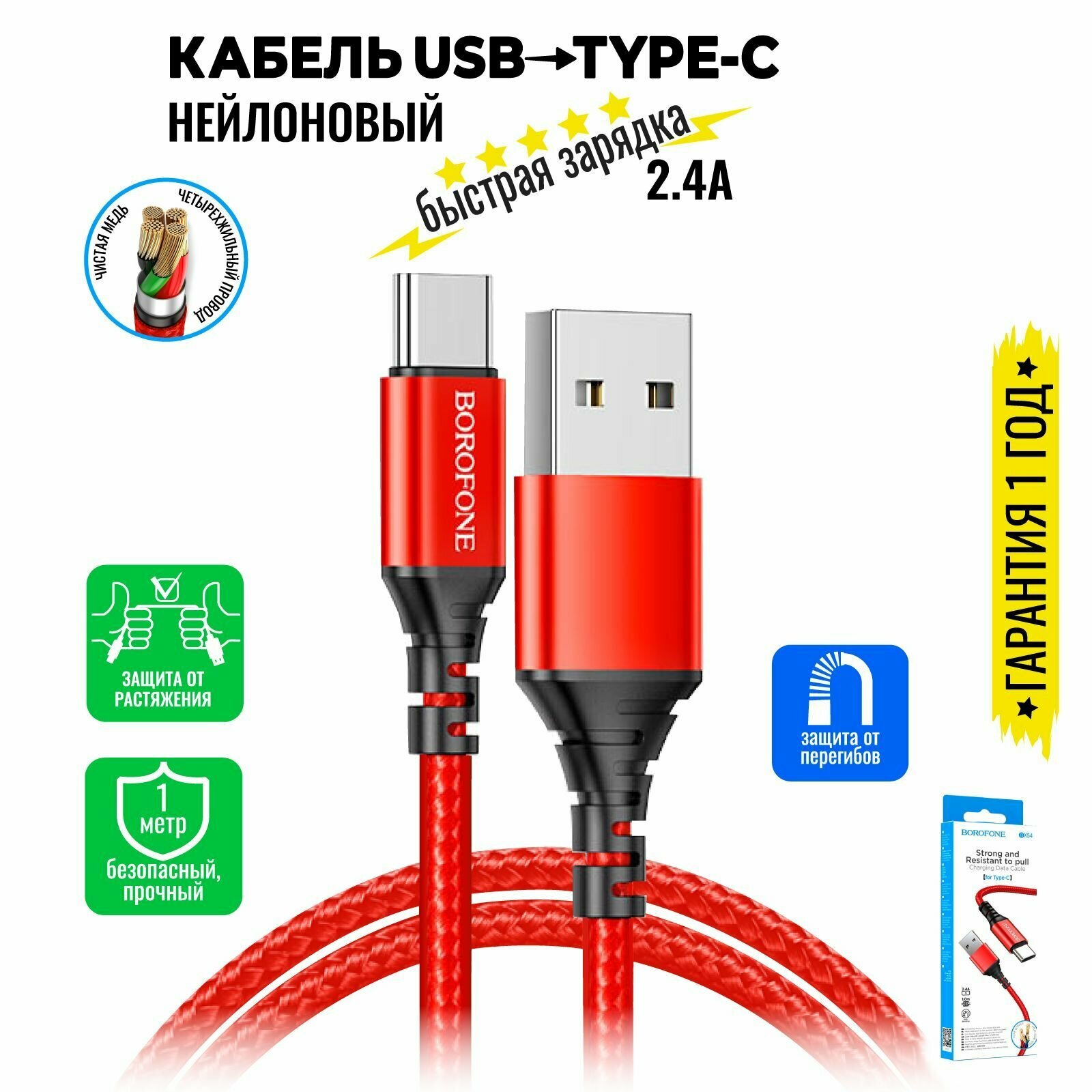 Кабель для зарядки телефона смартфона зарядка передача данных Type-C USB Borofone BX54 плетеный красный интересное: