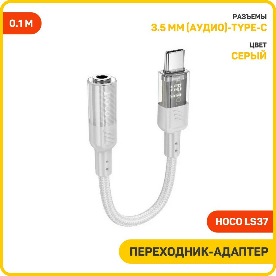 Переходник (адаптер) Hoco LS37 3.5 мм-Type-C, 0.1 м, серый