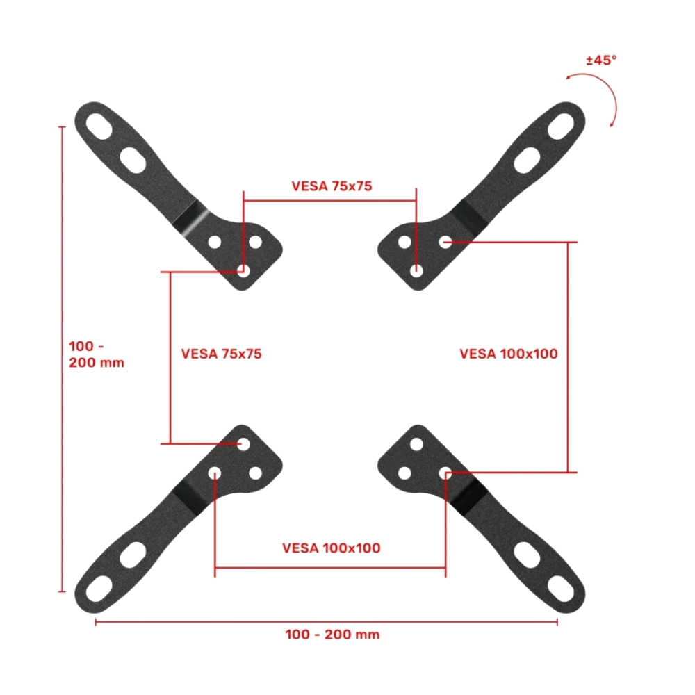 | Стандарт VESA | 100x100 мм / 100x200 мм / 200x100 мм / 200x200 мм / 75x75 мм |
