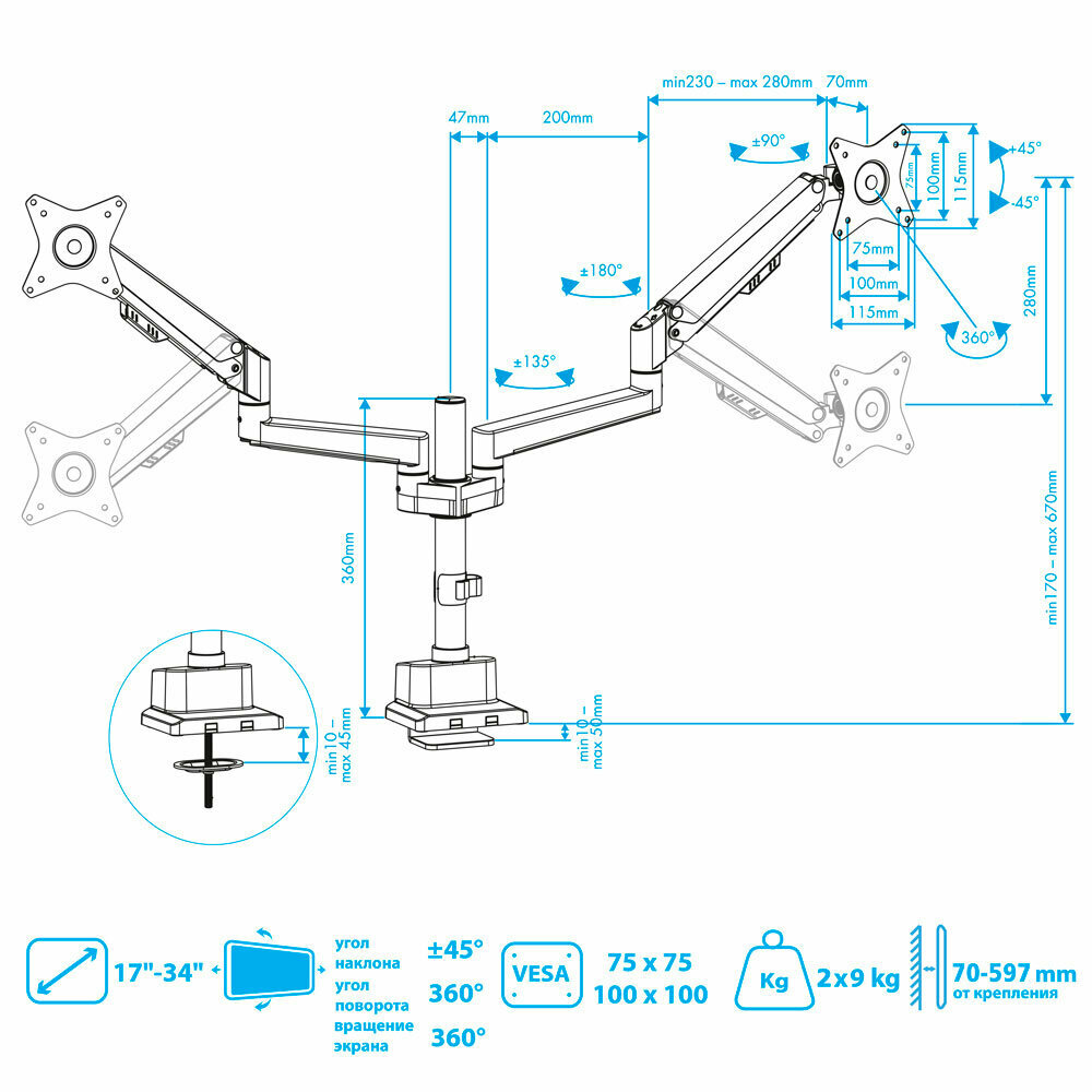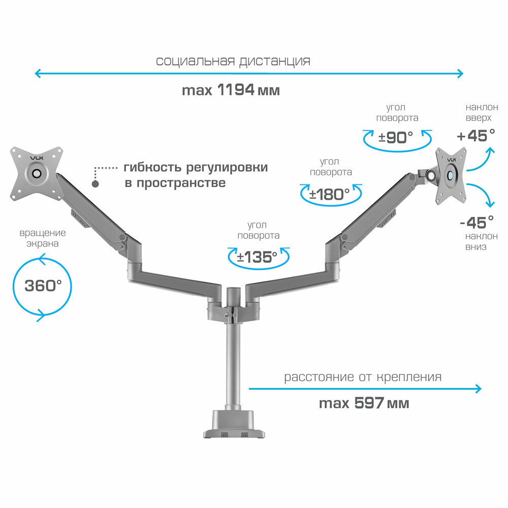 Кронштейн для двух мониторов настольный VLK TRENTO-95 / 13"-34" / до 2x9 кг интересное: