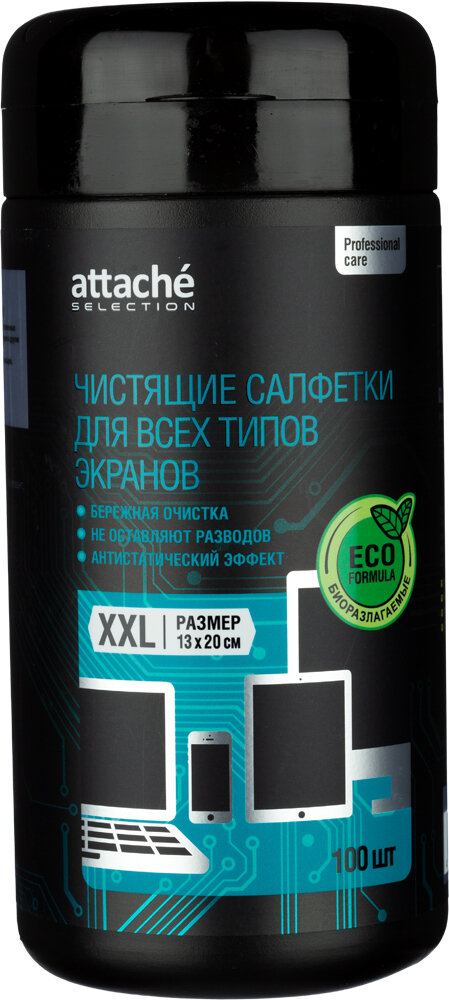 Салфетки влажные Attache Selection Professional для экранов (100 штук в тубе) интересное: