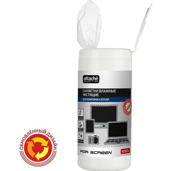Салфетки влажные Attache Selection For Screen для экранов (100 штук в тубе)