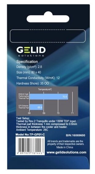 Термопрокладка GELID GP-Extreme Thermal Pad TP-GP01-B размер 80x40 мм, толщина 1.0 мм, 12 Вт/мK