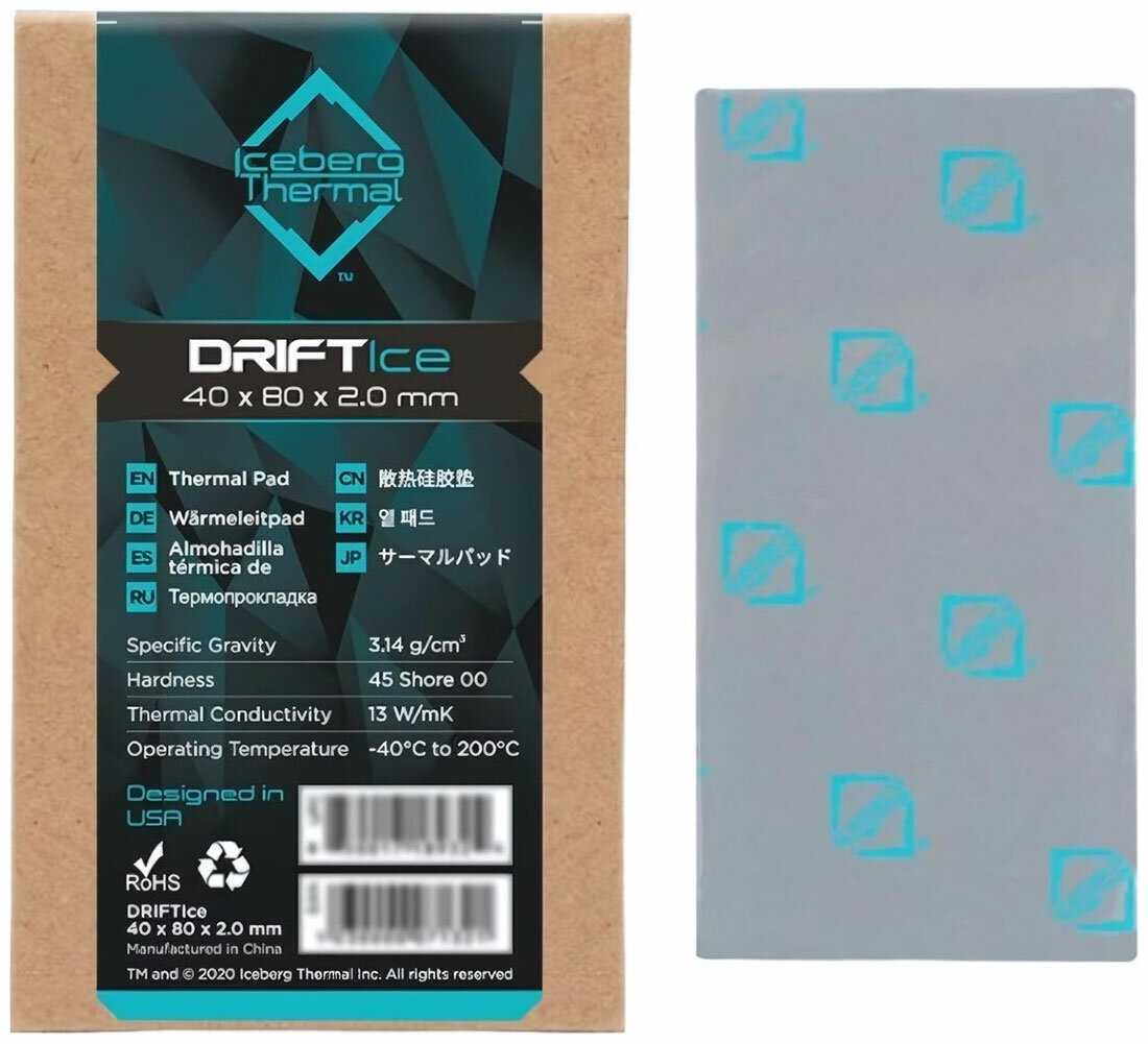Купить Термопрокладка iceberg 40x80x2.0 mm DriftICE (13 W/mK)