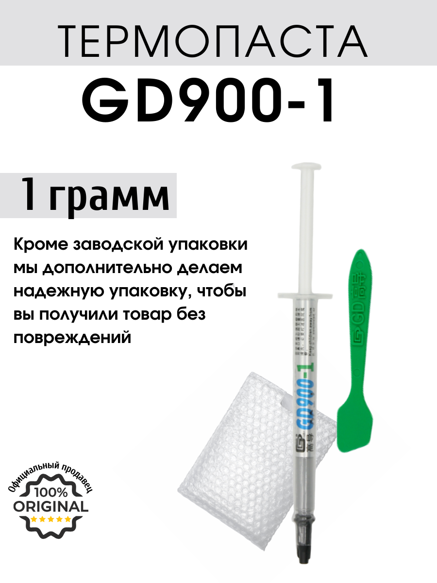 Термопаста GD900-1 в шприце 1 грамм с лопаткой для процессора ноутбука компьютера, теплопроводность 6,0 Вт/мК интересное: