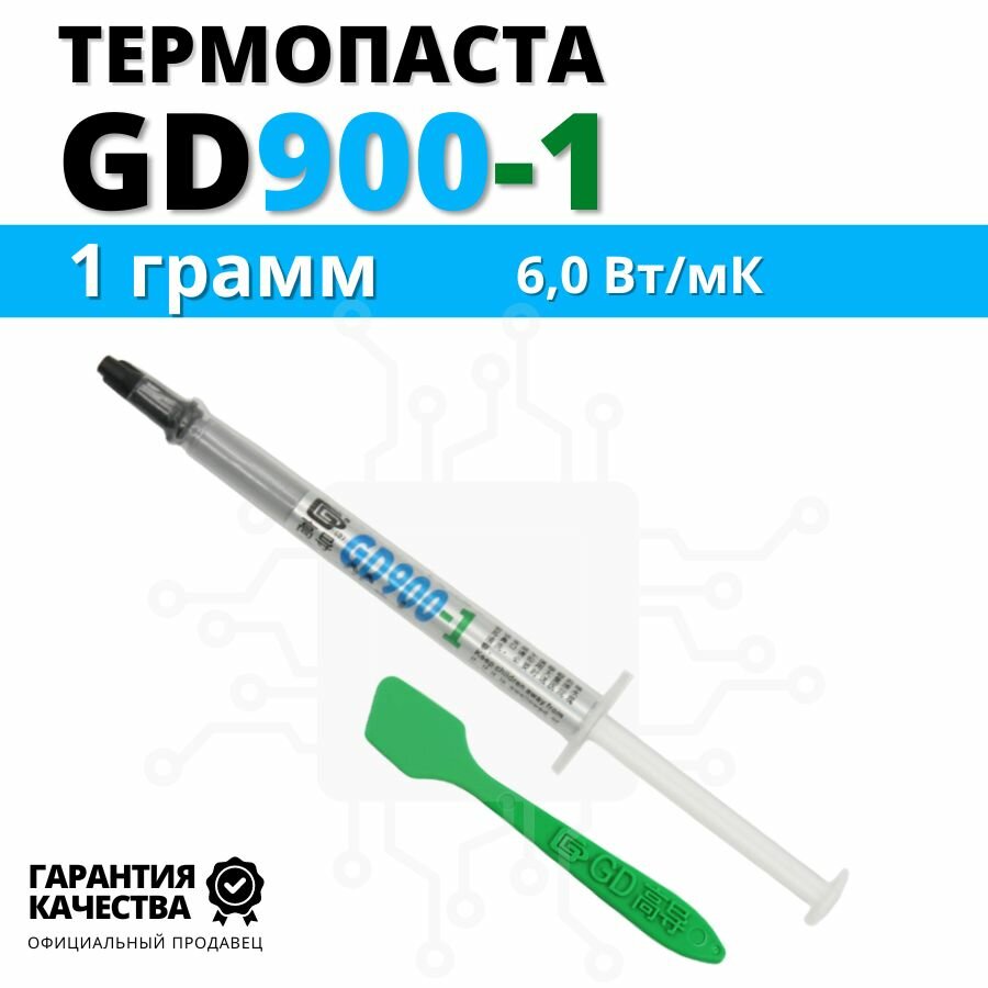 Термопаста GD900-1 теплопроводность 6,0 Вт/мК 1 грамм в шприце с лопаткой