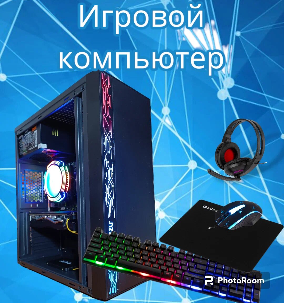 Игровой системный блок с набором: клавиатура, мышь, наушники, коврик + 500гб HDD