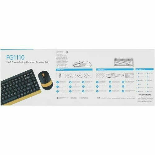 Купить Клавиатура и мышь беспроводные A4Tech Fstyler FG1110, черный/желтый, USB, радио, Multimedia