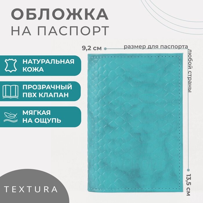 Обложка для паспорта, цвет бирюзовый TEXTURA 5312167 . интересное: