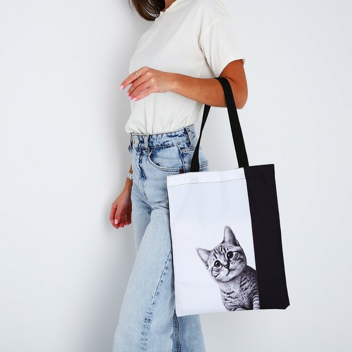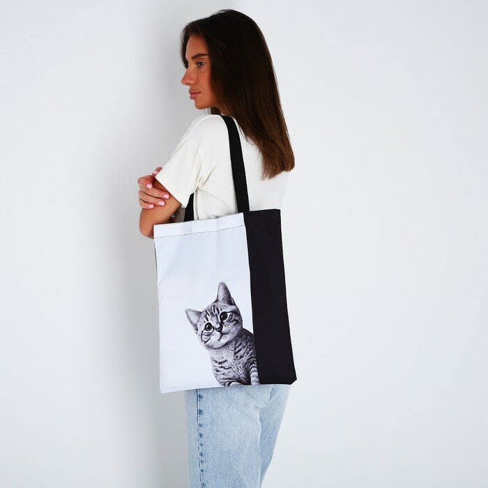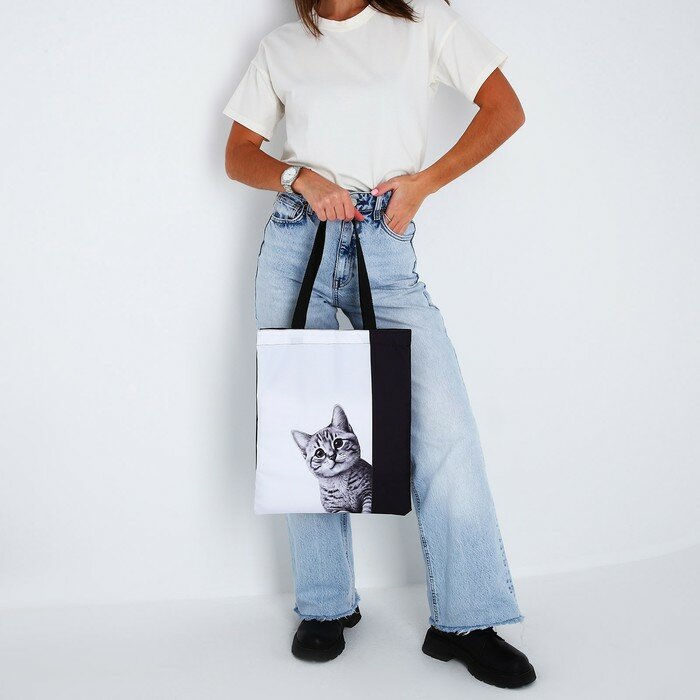 Сумка-шопер без застёжки, цвет чёрный/белый интересное: