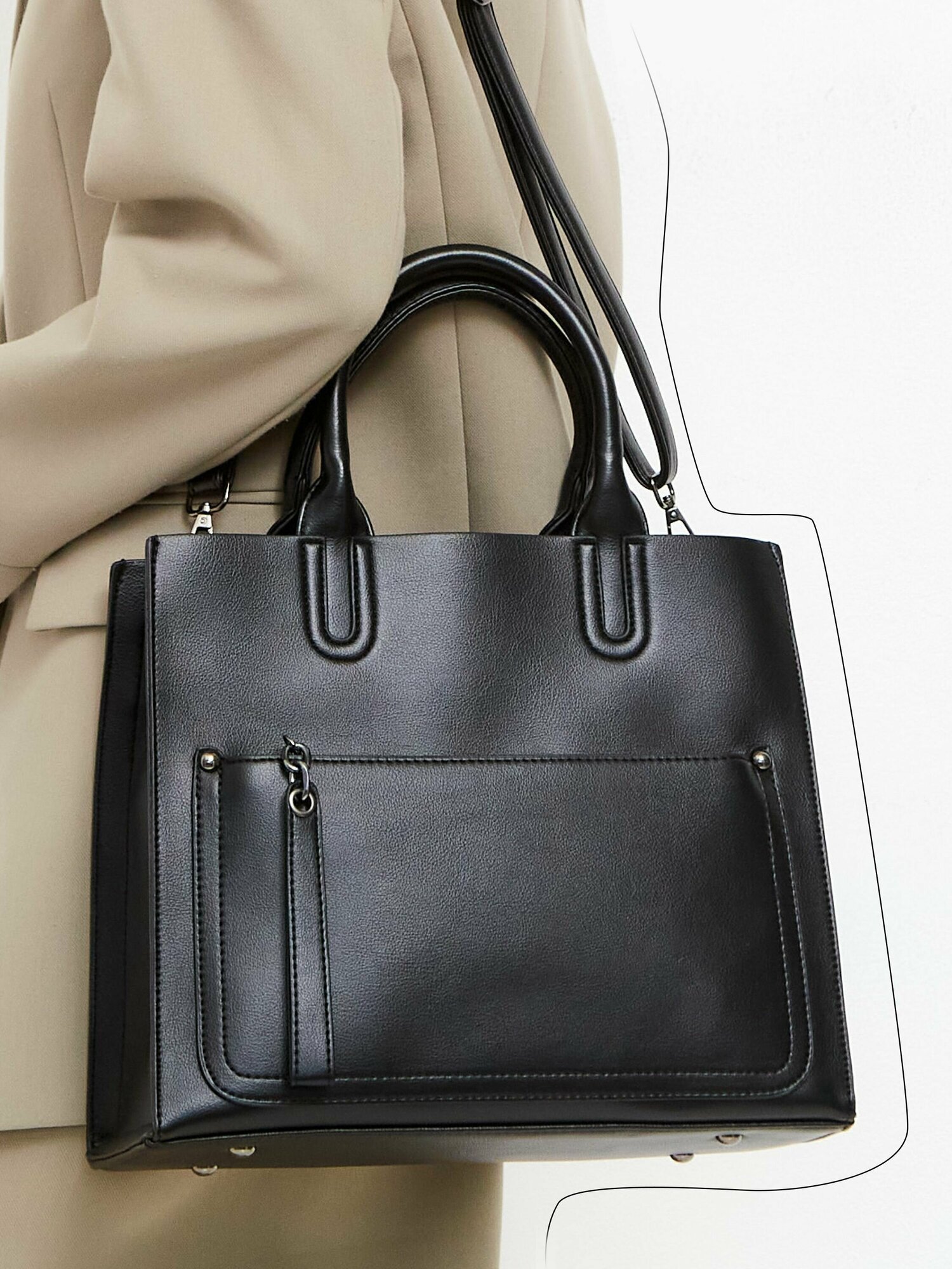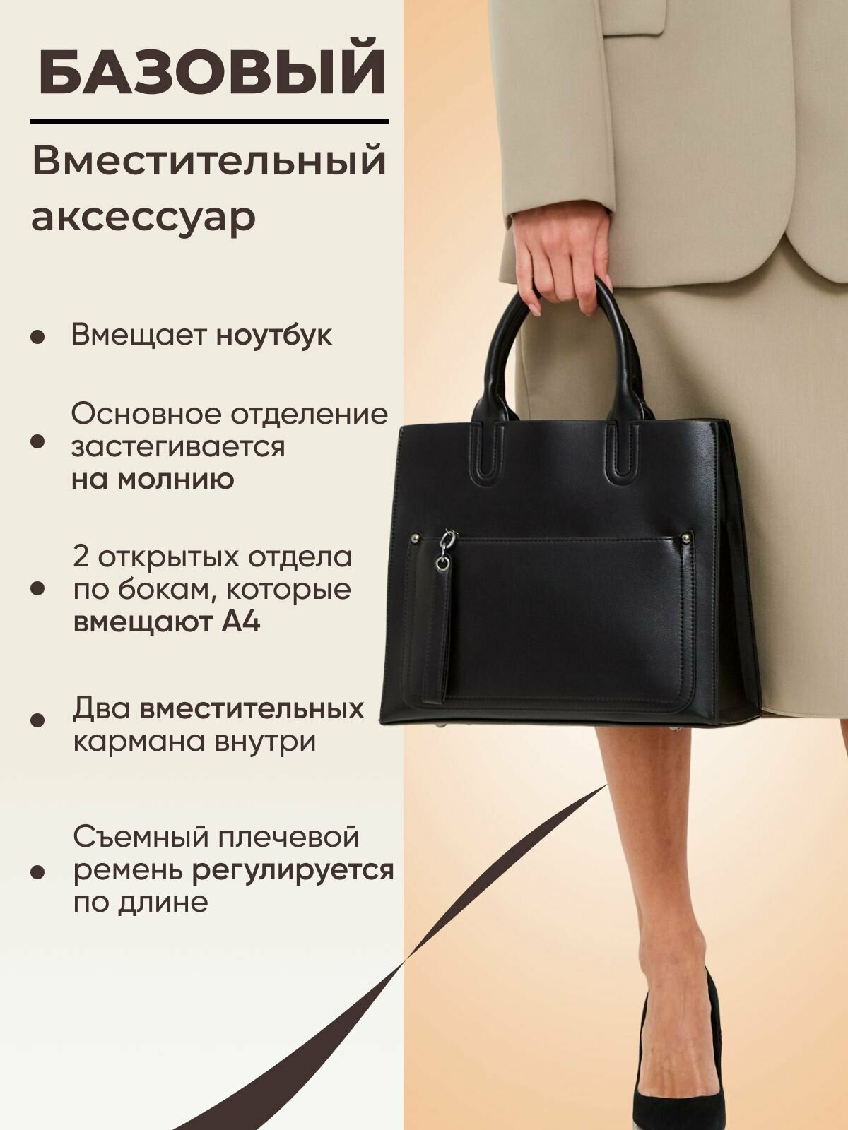 Сумка женская через плечо большая кожаная тоут натуральная прессованная кожа черная LILL'SIYA